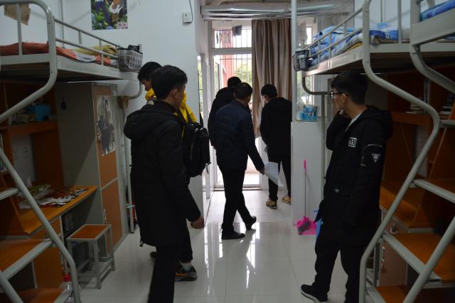 赵宝俊老师带领各班级生活委员深入每一间宿舍,配合宿舍人员的解说,针对宿舍的卫生、设备、人员以及宿舍文化进行评比。评比结束后针对每个宿舍的优缺点,赵老师也对他们提出了改进意见。