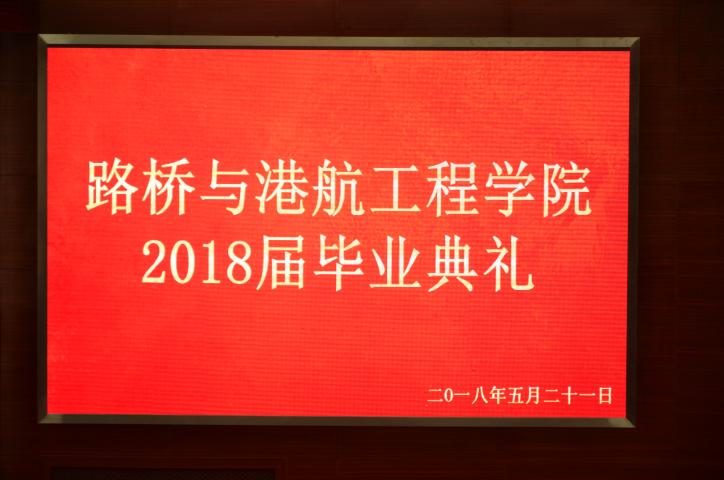 5月21日上午,路桥与港航工程学院2018届毕业生毕业典礼在图书馆报告厅举行。院长张毅,校企合作单位代表、英达公路再生科技有限公司蒋永河常务副总裁出席。教务处、学工处、路桥与港航工程学院负责人,教师代表、全体班主任和辅导员参加了大会。