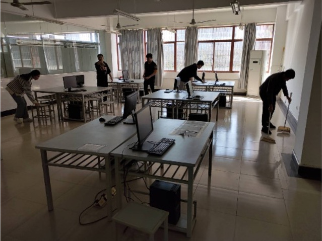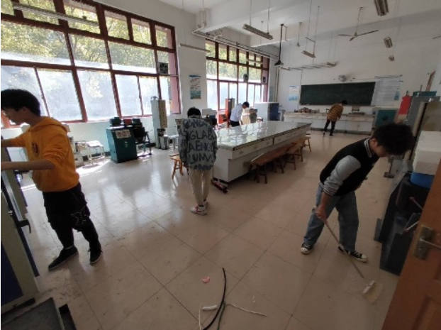 经过与实训室内老师的协调,道桥195团支部以宿舍为基本单位,对修远楼内1至2楼共24间实训室 进行分组打扫。近日修远楼内部正在进行光纤电缆的铺设,装修垃圾以及灰尘 对实验仪器与各种设备会产生不良影响,在老师的指导下,志愿者们按要求对实验室内部的设备进行清洁、保养、校准等一系列维护。