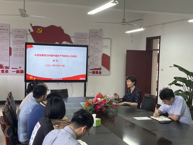 通过开展专题党课和学习教育活动,全体党员表示要以党史学习教育为契机,坚定理想信念,坚守教育者的初心和使命,做到忠诚党的教育事业,履职尽责,立德树人,扎实推进业务工作和支部建设工作融合开展,努力提高为师生服务的本领和水平,为师生诚心诚意办实事,以实际行动和优异成绩向建党100周年献礼。