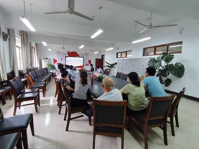 第三党支部书记黄阿梅以《高举中国特色社会主义旗帜》为题,围绕什么是中国特色社会主义、党对建设中国特色社会主义的重大决策、以及改革开放和社会主义现代化建设的伟大成就等方面的讲述,与支部党员交流了党史学习认识和心得体会。