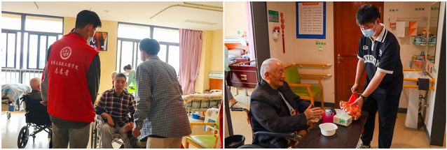 本次志愿活动,首先面向护理院失能老人群体,为老人们进行慰问演出,双方共筹备十余项演出节目,包括《保卫黄河》合唱、《长江之歌》独舞、武术表演等老年人喜闻乐见的节目。在40分钟的表演过程中,掌声、欢笑声此起彼伏,现场其乐融融,大家用实际行动把爱心和温暖送到老人的心坎上,让他们切身感受到来自社会的温暖。