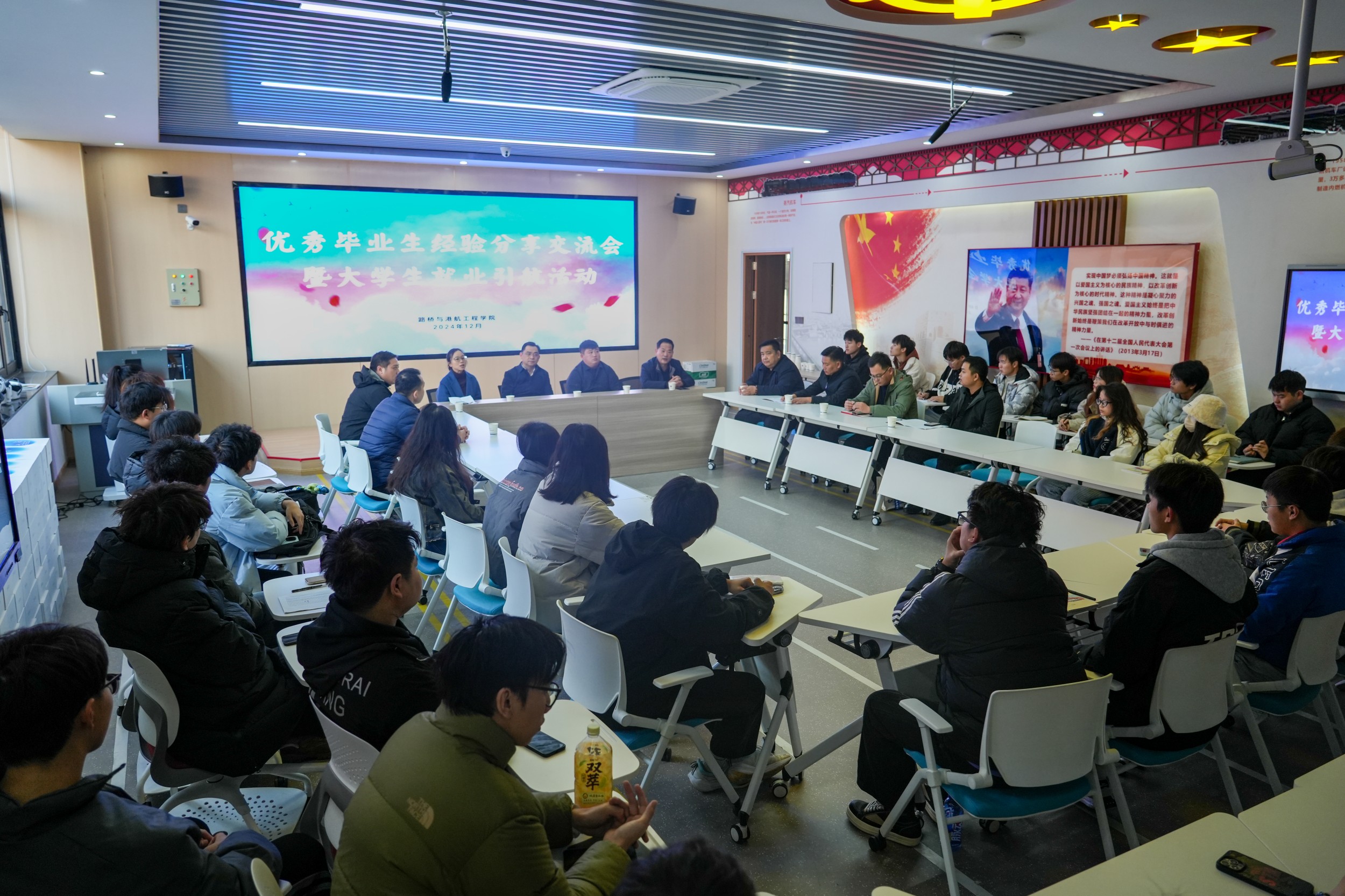 校友们分享了校园生活、工作经历、人生感悟,他们结合自身经历,向大家分享了就业方向选择、岗位信息获取渠道、快速适应职场等方面的宝贵经验,并鼓励大家要找准自身定位,端正就业心态,踏踏实实才能成长成才。