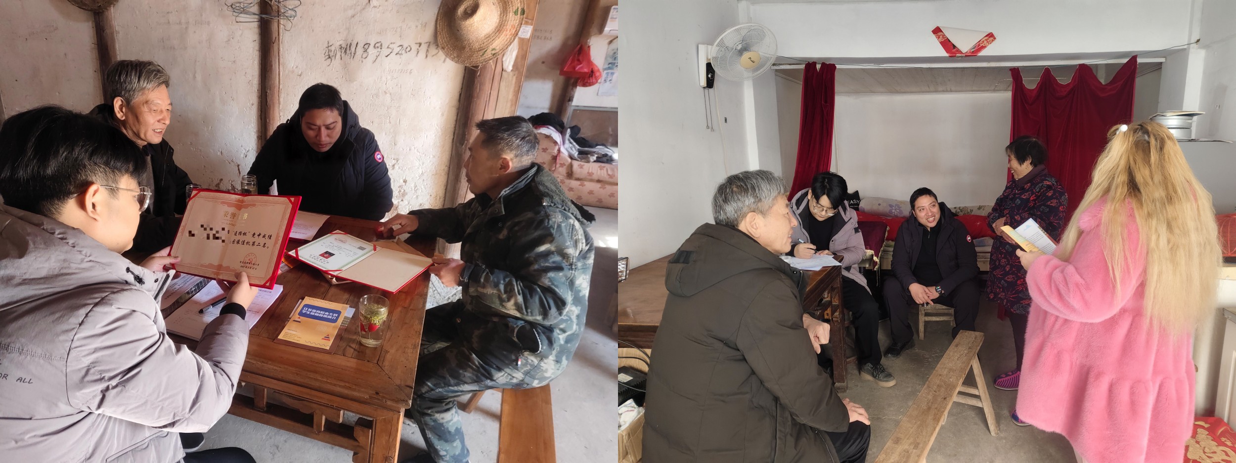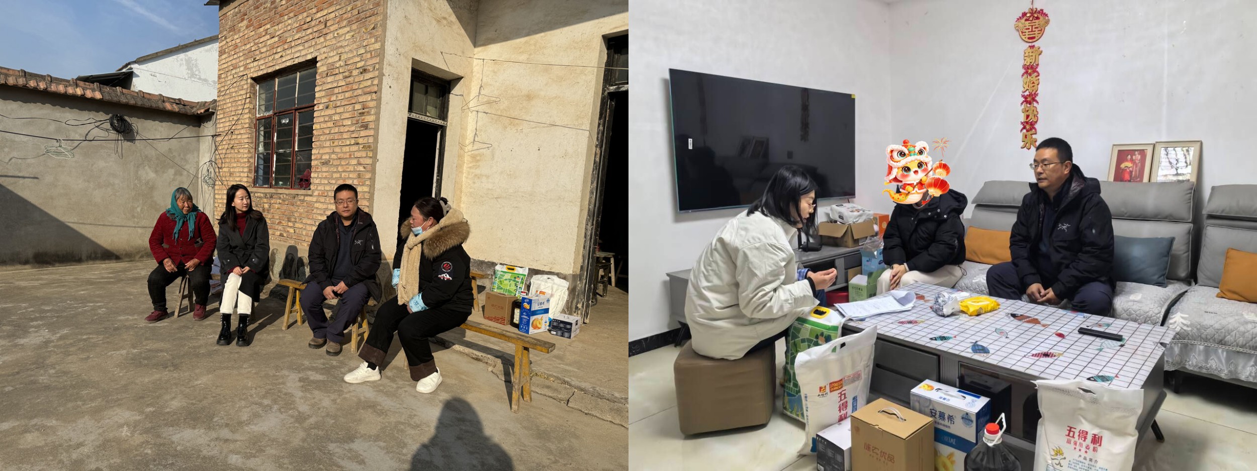 本次走访慰问活动涉及南京江宁、溧水、高淳和涟水县成集镇、岔庙镇、涟城街道等地,共走访7户学生家庭。走访过程中,各位老师与学生及家长亲切交流,反馈了学生在校的学习生活情况,进一步了解学生家庭实际情况与困难,详细介绍国家和学校的资助政策,认真征求家长和学生对学校、学院在学生资助、人才培养、教育管理等方面的意见与建议,并做好家访信息记录整理,为后期进一步提升资助工作实效提供保障。此外,走访慰问工作小组为各受访家庭送上了粮、油、坚果大礼包、抽纸、春联等慰问品,向他们表达了学校和学院的亲切问候。