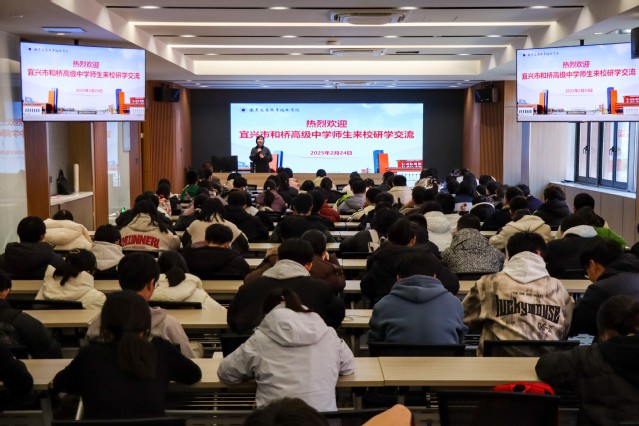 2月24日,宜兴市和桥高级中学100余名师生走进南京交通职业技术学院,开展主题为“探索职教前沿,赋能职业梦想”的研学实践活动。路桥与港航工程学院和轨道交通学院共同接待了师生一行。
