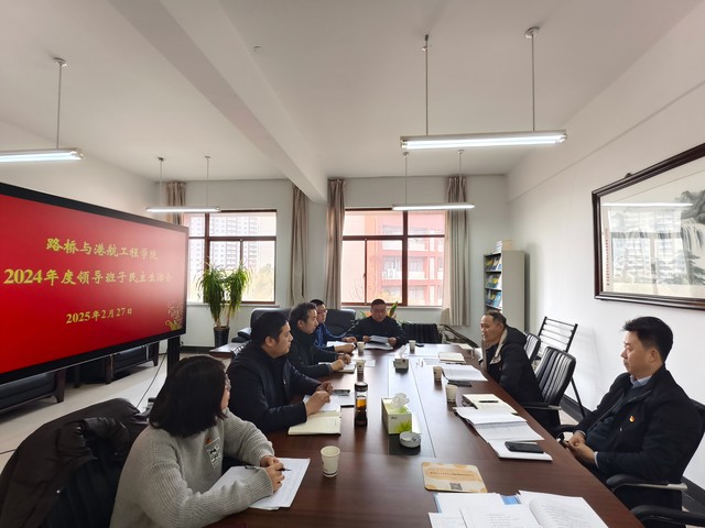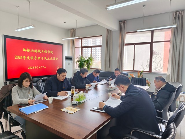 2月27日,路桥与港航工程学院党总支在修远楼318会议室召开2024年度党员领导干部民主生活会。党委委员、党委组织部(统战部)部长康建军,纪委副书记吴成群莅会指导,路桥与港航工程学院领导班子全体成员参加会议。党总支副书记郭振华主持会议。