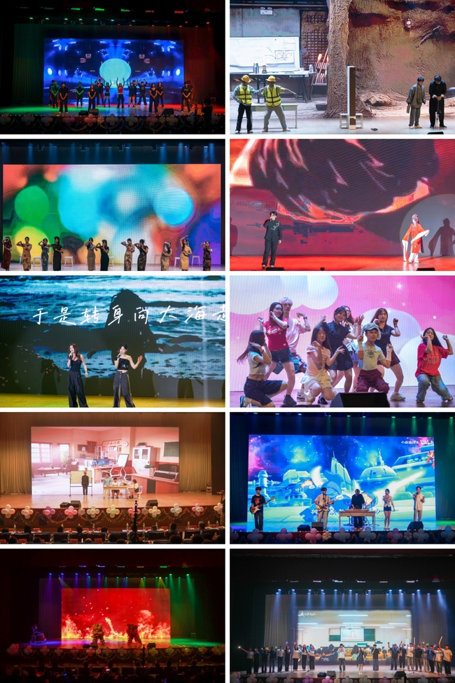 中场阶段,热闹的游戏互动环节让全场沸腾,师生们积极参与,欢声笑语不断。随后的二等奖抽奖更是将气氛推向小高潮,幸运者的欢呼声响彻会场。大学生艺术团龙狮社带来的龙狮表演气势磅礴,展现出传统文化的独特魅力;双人唱《山海》深情婉转,展现出对未来的憧憬与对离别的不舍;话剧团的《再见,老师》以细腻表演,刻画师生间的深厚情谊,不少观众为之动容;大学生艺术团的舞蹈串烧也用精彩的表演征服全场,展现舞蹈魅力。