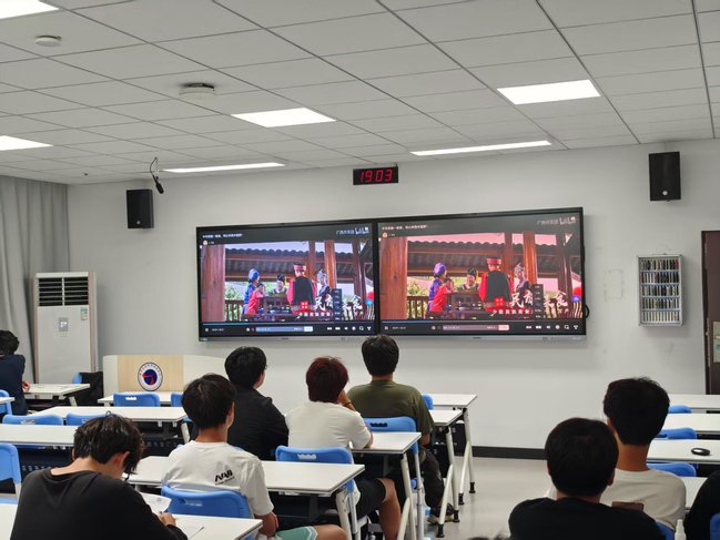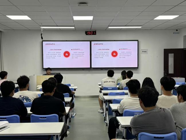 活动伊始,团支书为班级同学讲述了本次活动的内容。紧接着播放相关视频,带领同学们回顾了中华民族团结奋斗的历史。观影结束后,团支书结合图文资料,深入讲解了铸牢中华民族共同体意识的内涵和意义。最后互动交流环节,同学们围绕“如何在日常生活中促进民族团结”展开了热烈的讨论,并上台分享自己的感受。