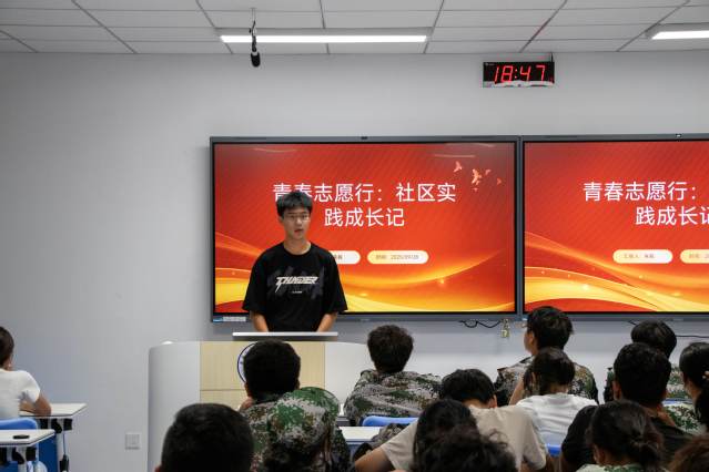 分享会上,道桥2405班朱毅以“青春志愿行:社区实践成长记”为主题,从“初心启程”“躬身服务”“党建铸魂”“育苗成长”“收获镜鉴”五个维度,详细讲述了在社区开展志愿服务的全过程,展现了青年在基层服务中践行担当的风貌。