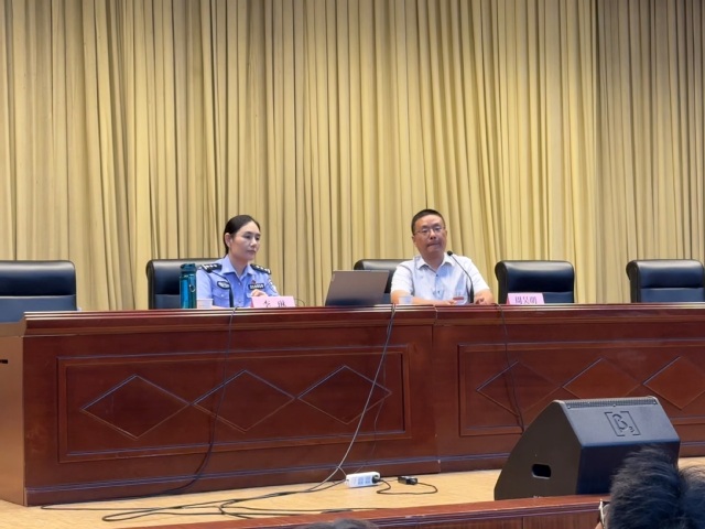 学院党支部副书记周昊明出席并主持活动,强调了安全教育在大学生活中的基础性与紧迫性,呼吁新生筑牢安全意识,并向全体新生介绍了李琳副所长的职业履历与反诈工作经验,对李所长的到来表示热烈欢迎。