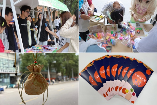 集市一是“芳香精心,烦恼包起来”DIY手工自制中药香包活动。集市二是音乐调心,音振脉络,韵启心扉——音疗活动为学子按下“心灵复位键”。集市三是“框”住美好,“泥”我共筑“心”能量DIY黏土相框活动。