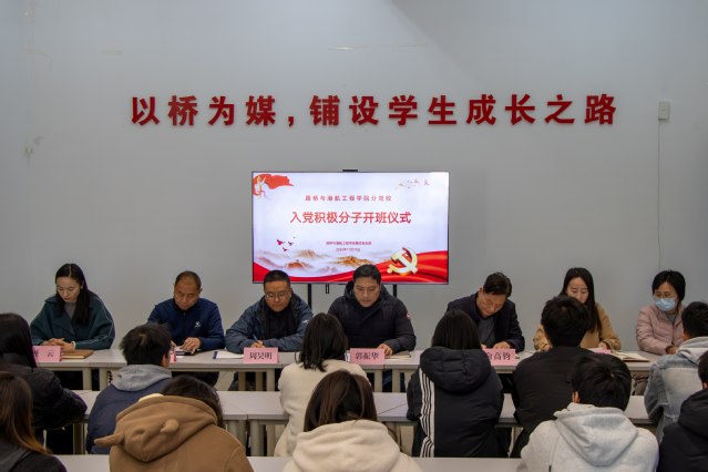 11月19日下午,路桥与港航工程学院党总支第四党支部在E栋一站式服务中心举行分党校第47期入党积极分子培训班开班仪式。学院党总支副书记郭振华、党总支副书记周昊明、关工委常务副主任俞高钧、关工委委员洪春斌、第四党支部书记李良田、支部委员顾云、支部委员郑秋雁及全体第47期入党积极分子齐聚现场,会议由第四党支部书记李良田主持。