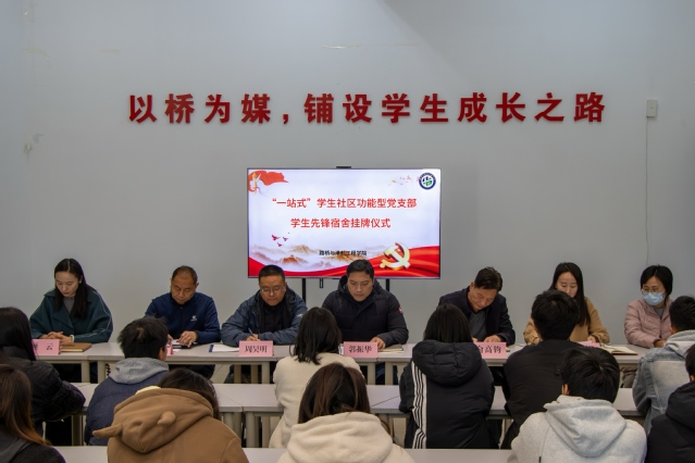 11月26日,路桥与港航工程学院在E栋“匠师协同育人”工作站举行“一站式”学生社区功能型党支部党员宿舍挂牌活动。路桥与港航工程学院党总支副书记郭振华、周昊明,二级关工委常务副主任俞高钧、关工委委员洪春斌,学工办主任李良田,分团委书记顾云,辅导员郑秋雁,在校学生党员、入党积极分子代表及“一站式”社区学生队伍代表参加本次活动。