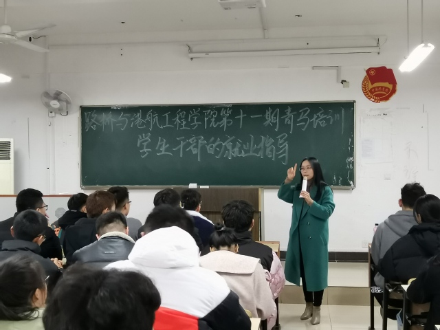 为更加细致深入做好2021届学生就业指导工作,12月2日下午,路桥与港航工程学院学工办黄阿梅老师为2021届学生干部做了就业指导讲座。讲座强调了作为主要班级骨干,如何在学生群体中起到引导正确择业观、积极参与就业指导服务的带头作用。首先需要自己树立正确的就业观;在实习中爱岗敬业、吃苦耐劳、踏实肯学、不断创新,同时把这些观念通过各种途径传播到学生中去,形成全院实习生良好的择业就业的氛围。2021届毕业生就业工作已经启动,提前给学生干部做好就业指导,为就业工作的开展打下良好的基础。
