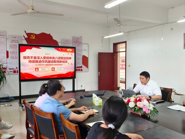 党总支副书记郭振华以《深入贯彻中央八项规定精神学习教育 持续推进作风建设取得新成效》为题,为学院全体党员授课。党课围绕学习教育的重大意义、目标要求、实践路径、案例警示四大核心内容展开,深刻阐述了深入贯彻中央八项规定精神学习教育的重要性,明确开展深入贯彻中央八项规定精神学习教育的九个目标要求,从强化政治建设、作风建设、纪律建设等方面提出具体落实路径,并结合高校及相关领域近年来违反中央八项规定精神的典型案例,剖析思想根源与危害后果,警示全体党员以案为鉴、警钟长鸣,时刻绷紧“四风”防控之弦。