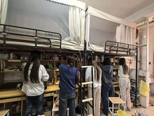 活动过程中,同学们热情高涨、分工协作,展现出极强的集体荣誉感和团结协作精神。有的拿起扫帚、拖把,认真清扫地面灰尘、清理角落垃圾;有的擦拭门窗、玻璃、栏杆,除去污渍与水渍;有的整理书桌、衣柜、床铺,将书本、衣物、生活用品分类归置,做到整齐规范;还有的主动承担起公共区域清洁任务,清理楼道、洗漱间等处的杂物。面对床底、柜后、阳台角落等平时难以清理的卫生死角,大家不怕脏、不怕累,弯腰俯身、仔细清扫,不放过一丝一毫的污渍。原本积灰的角落变得干净清爽,杂乱的物品变得井然有序,昏暗的门窗变得明亮通透,每一处变化都凝聚着同学们的汗水与用心。